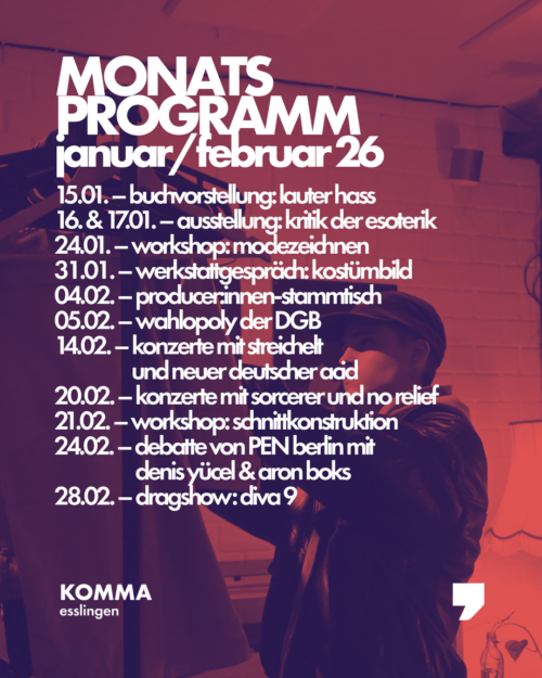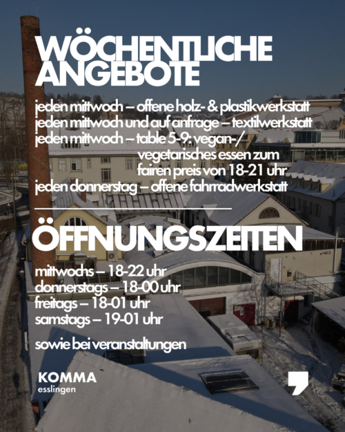 Kontakt und Ameldung: werkstatt@komma.info