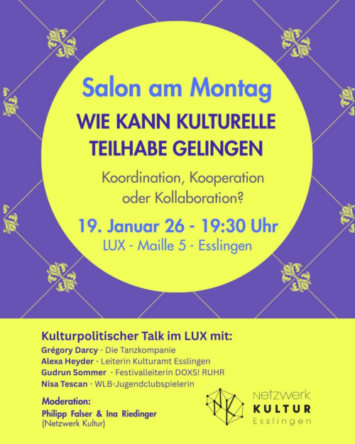 19.01., 19:30 Uhr Salon am Montag: Wie kann kulturelle Teilhabe gelingen